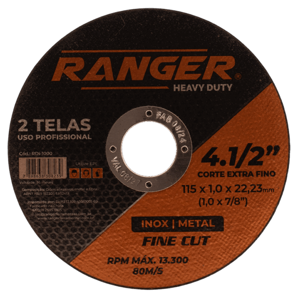 O Disco de Corte Ranger foi desenvolvido para oferecer precisão, durabilidade e segurança em cortes de aço inoxidável. Ideal para profissionais da metalurgia, mecânica e construção, permite cortes rápidos e eficientes, mantendo o acabamento limpo e uniforme.